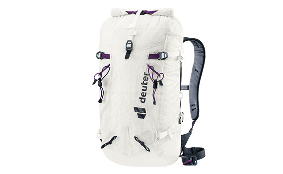 Das Alpine-Rückensystem sorgt für eine kompakte Lastverteilung und erlaubt maximale Bewegungsfreiheit. Der Roll-Top-Verschluss und die seitliche Zugangsmöglichkeit machen das Packen und den Zugriff auf die Ausrüstung schnell und unkompliziert. Praktische Befestigungsmöglichkeiten, wie Pickel- und Stockhalterungen sowie seitliche Kompressionsriemen, bieten Flexibilität für unterschiedliche Touren. Die Dyneema-Faser des Hauptmaterials macht den Rucksack extrem leicht, wasserfest und widerstandsfähig gegen Abrieb.