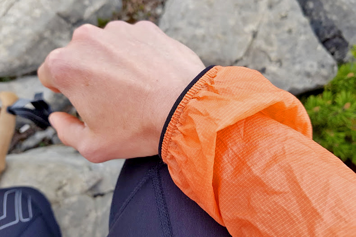 Die Windjacke ist ein absolutes Fliegengewicht, das fällt sofort auf. Für jeden, der viel Wert auf wenig Gewicht am Berg legt, ist sie in jedem Fall einen näheren Blick wert. Bei Größe S bringt die leichte Funktionsjacke magere 154 Gramm auf die Waage. Das Außenmaterial besteht aus strapazierfähigem Pertex® Quantum® – momentan eines der leichtesten Outdoor-Materialien auf dem Markt.