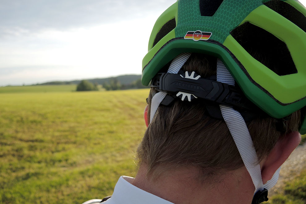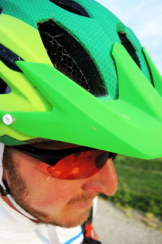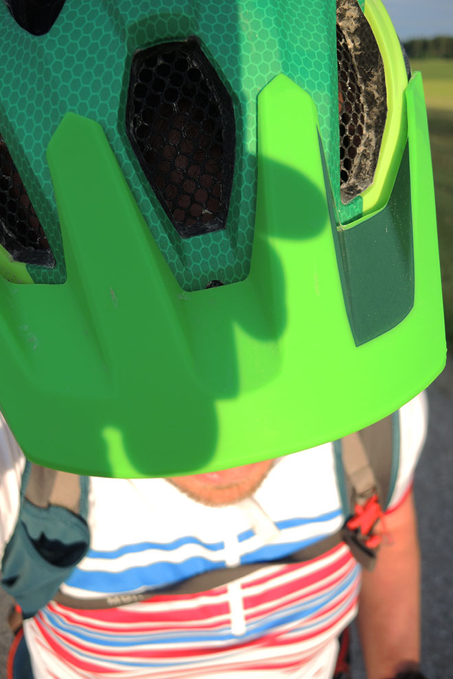 Darüber hinaus muss ich auf der rund 26 Kilometer langen Strecke insgesamt 350 Höhenmeter aufwärts absolvieren. Dabei kann der Carapax beweisen, was in seinem Lüftungssystem steckt! Die Fliegengitter an den Lüftungsöffnungen fallen jedenfalls sofort positiv ins Auge – da hat jemand mitgedacht. Denn nichts ist nerviger, als einen summenden Flattermann zwischen Kopf und Helm sitzen zu haben. Quintessenz: Der Helm überzeugt mit einer ausgezeichneten Belüftung in allen Fahrsituationen – mit einem Hitzkopf ist jedenfalls nicht so schnell zu rechnen!