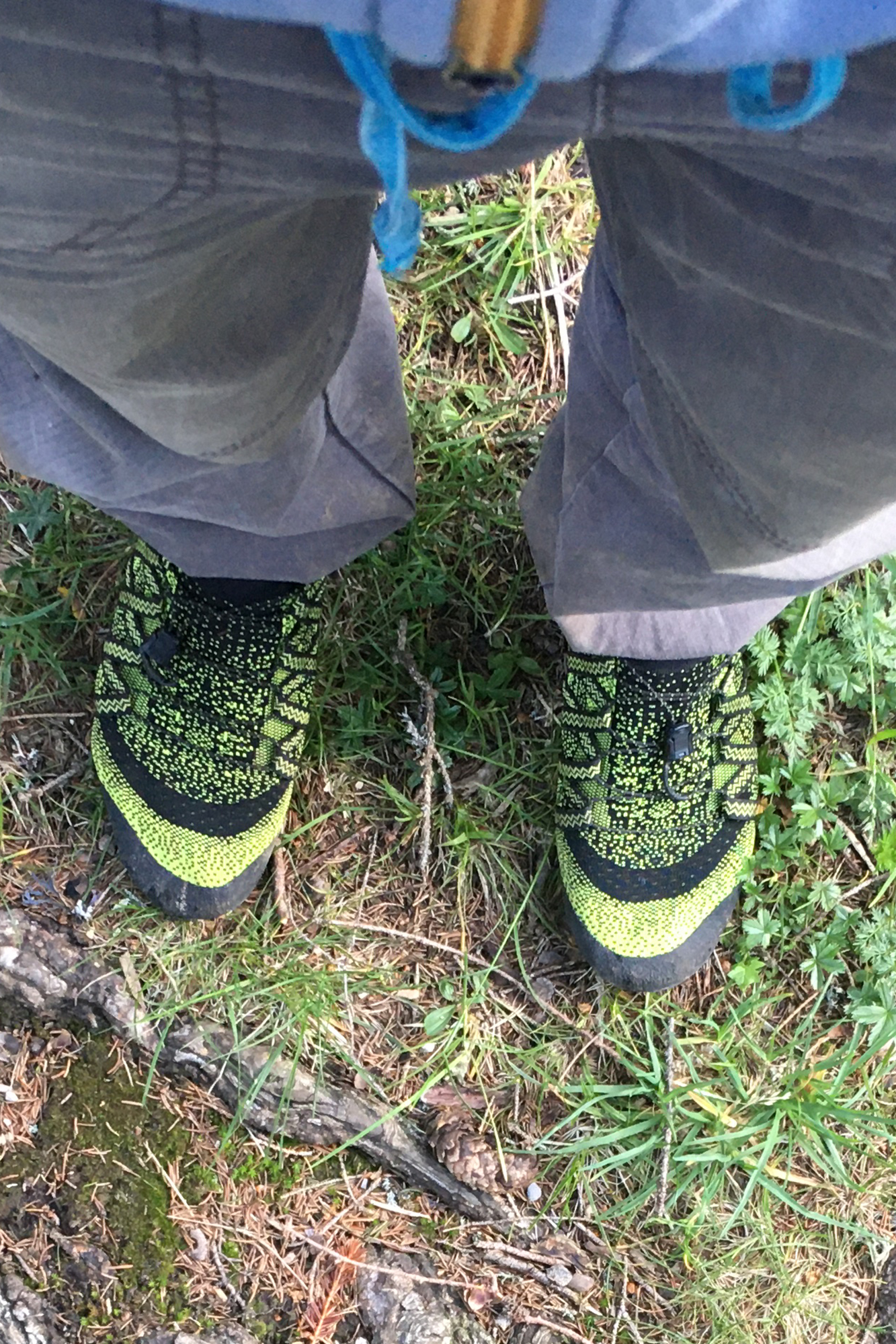 … bin ich nach wie vor sehr zufrieden mit den Schuhen. Sie waren viel am Wandfuß beim Klettern, einige Male Wandern – und ganz oft ziehe ich die Schuhe an, wenn ich einfach mal eben schnell raus muss. Das Mesh hat bislang wunderbar gehalten, an der dünnen Steinschutzkappe vorne gibt es einige Kratzer, aber auch das passt soweit immer noch. Mit der Ferse habe ich inzwischen keine Probleme mehr.