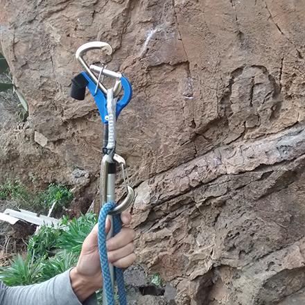 Auch sind die letzten zwei Glieder sehr anfällig sich zu verbiegen, da der Seilzug von unten beim Einhängen die letzte bzw. die oberste Stange nach unten zieht. Nicht zu verachten ist die enorme Geduld und Vorsicht, die man bei diesem Handling an den Tag legen muss. Manchmal kommt man sich vor man wäre beim Angeln oder Fliegenfischen. Es kann zum Teil eine Weile dauern, bis der Haken geklippt ist. Bei Einstiegen mit gefährlichen Abständen ist das aber allemal besser als ein gebrochenes Kreuz oder ein ramponierter Sicherungsmann, oder?