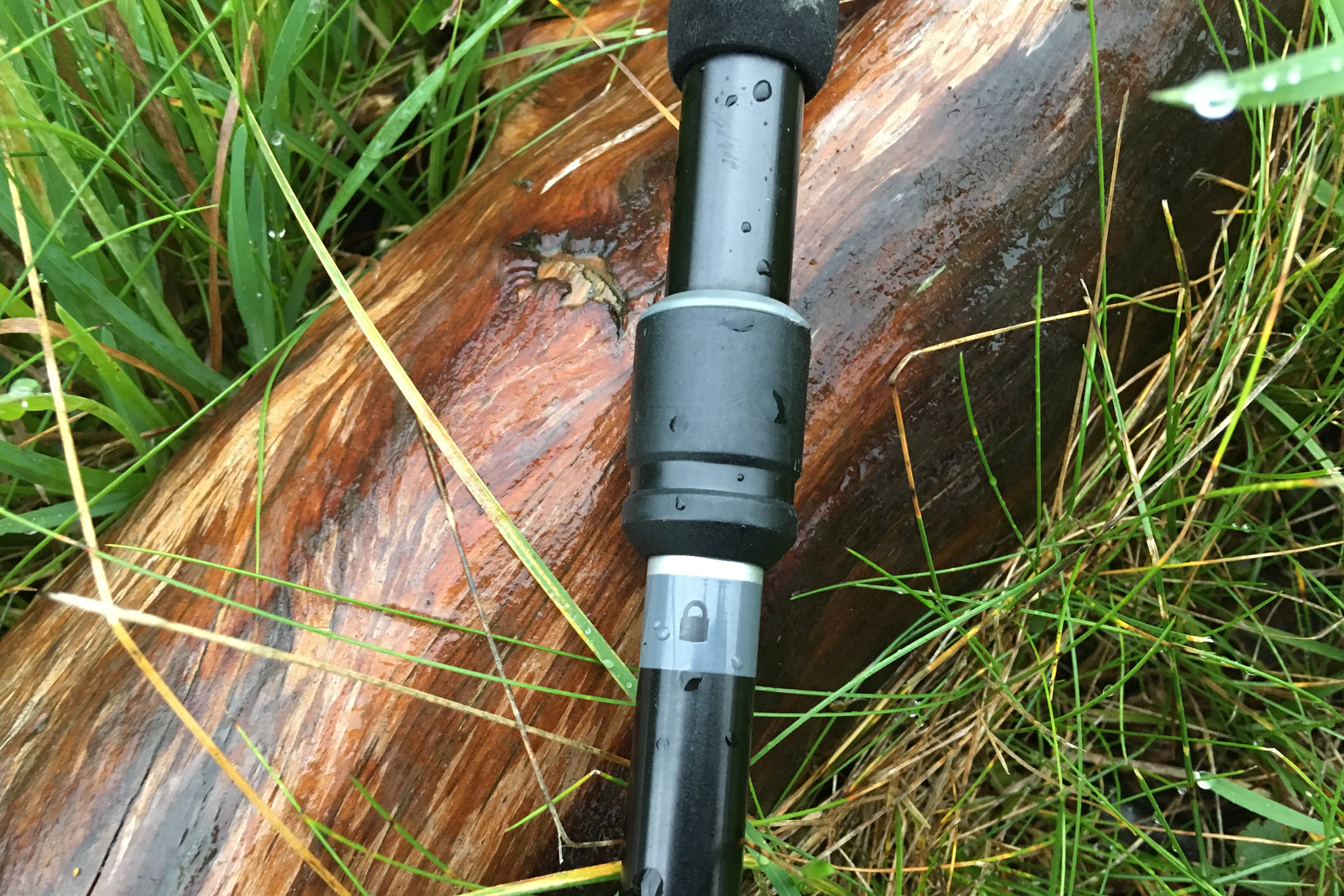 Begeistert hat mich bereits beim ersten Fixieren die SlideLock-Technologie: Man nimmt den Griff und das erste Stocksegment, zieht das Ganze auseinander und sofort rastet der Stock ein und ist fixiert. Ebenso schnell lässt sich der Slider auch wieder nach oben schieben, um die Fixierung aufzulösen. Das Zusammenstecken und Zerlegen des Stocks funktioniert wahnsinnig schnell und geht sehr intuitiv vonstatten.