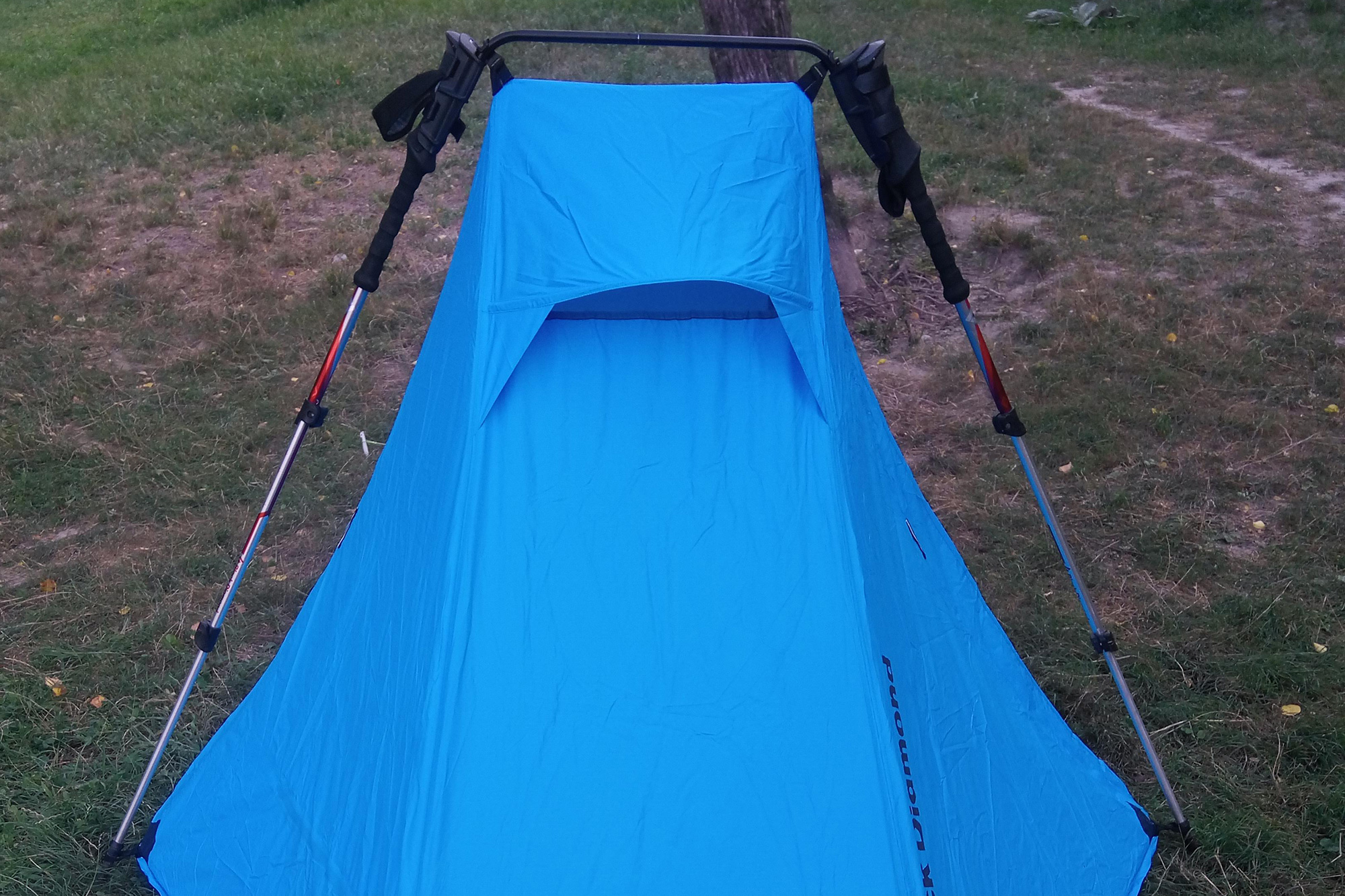 - Variante 2, das Distance Adapter Zelt: Black Diamond liefert Adapter zum Aufbau mit, so dass jeder Trekkingstock nutzbar ist. Diese Variante ist etwas günstiger als die erste, bei der man die hochwertigen Black Diamond-Stöcke mit einkauft. Ich habe die zweite Variante (UVP 240 EUR) getestet.