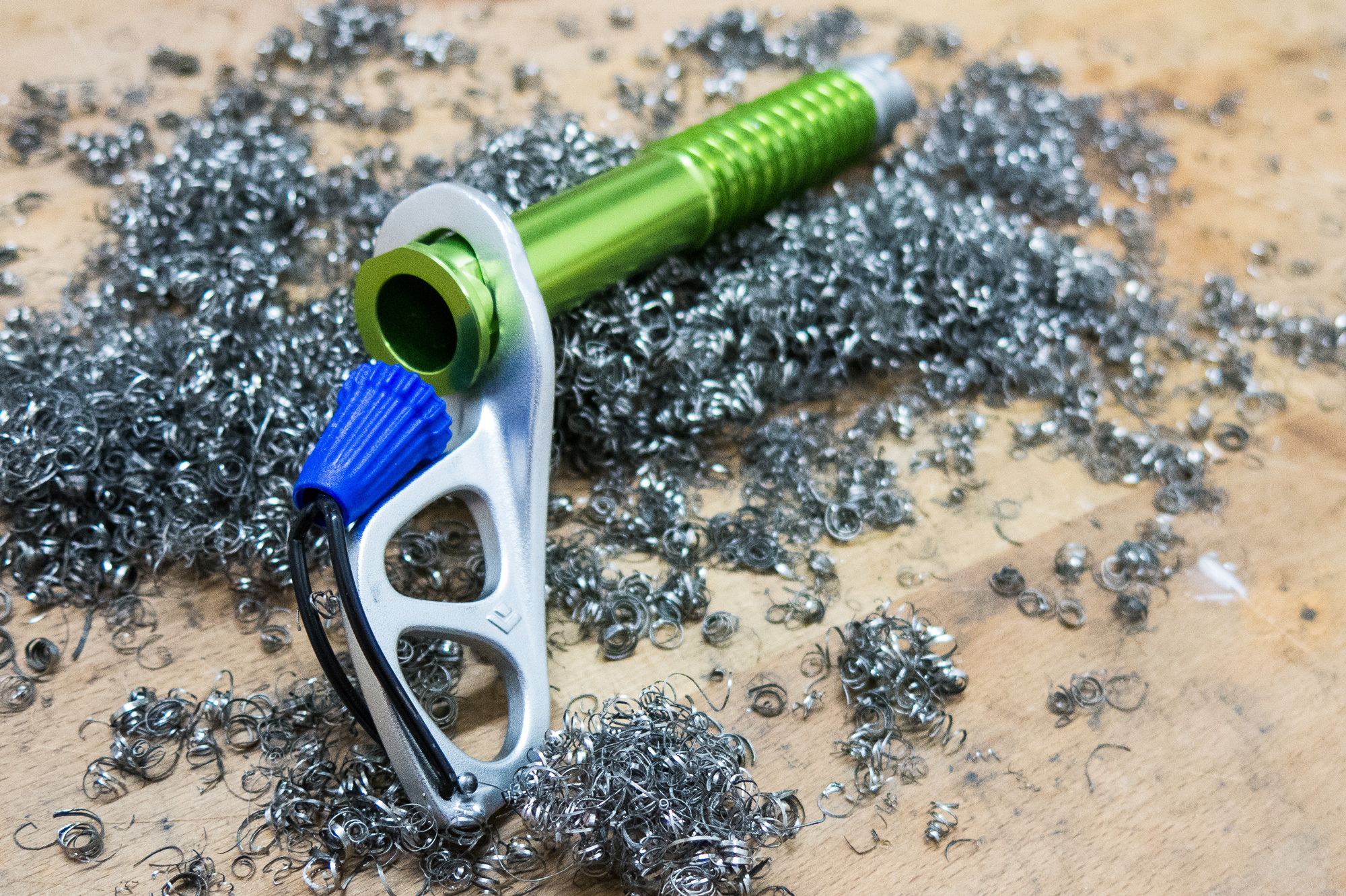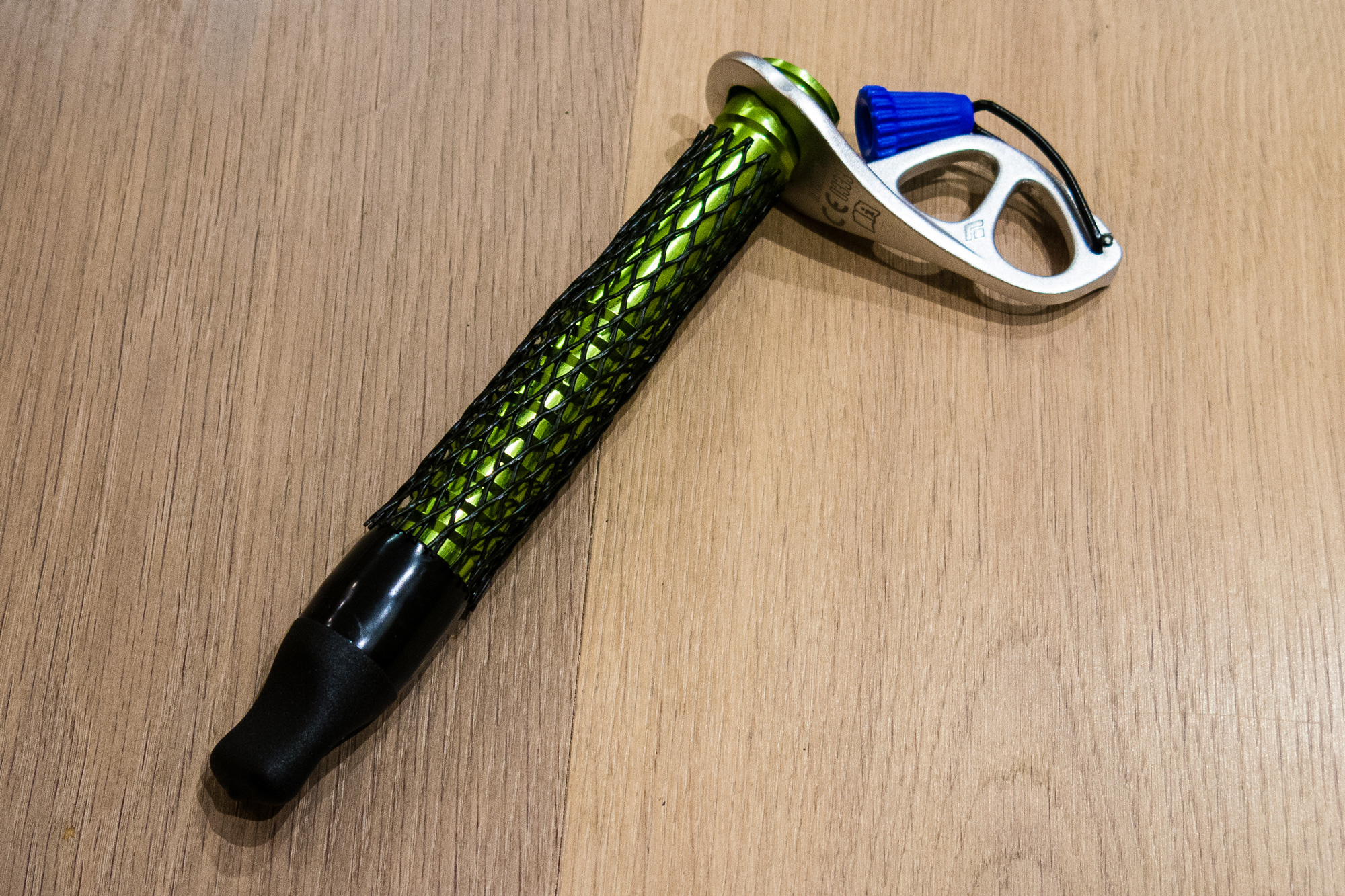 Gut verpackt mit Netz und einer neuen, besser greifbaren Schutzkappe wird die grüne Ultralight Ice Screw geliefert. Ausgepackt fällt der Gewichtsunterschied tatsächlich deutlich aus. Die 81 Gramm schwere Eisschraube lässt das Herz höherschlagen!