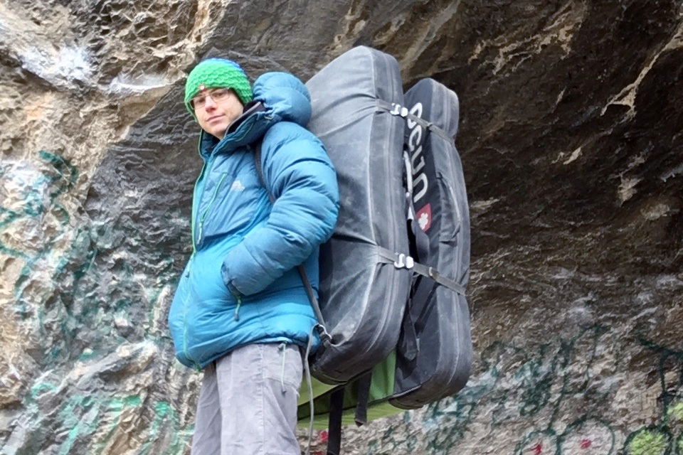 Lediglich zwei kleinere Kritikpunkte habe ich: So hat mich bei der Lieferung etwas überrascht, dass die Matte keinen Hüftgurt hat. Wahrscheinlich ist das dem geringen Gewicht des Crashpads geschuldet. Mit Rucksack in der Matte und Zusatzpad hinten dran wäre ein Hüftgurt schon ganz angenehm, allerdings komme ich auch ganz gut ohne klar.