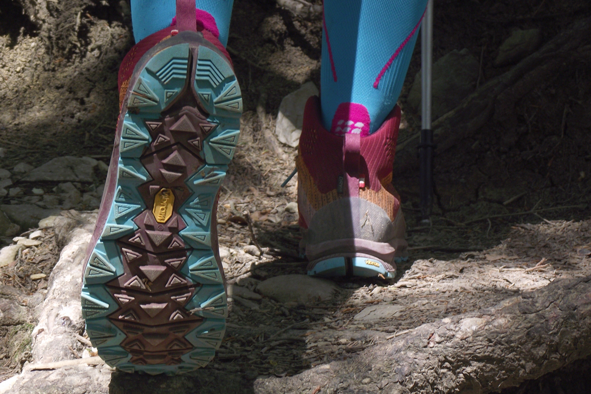 Im flachen Gelände – und sogar beim Herumlaufen in der Stadt – läuft sich der Dachstein Super Leggera DDS durch die ebenfalls flache Sohle angenehm leicht. Auf unebenem, felsigen Gelände ist der Schuh jedoch erst so richtig in seinem Metier. Auch in richtig rauem Gelände bietet der Schuh ausreichend Stabilität. Ein weiteres Feature, das speziell gegen lose Steine und vor dornigem Bodenbewuchs schützt, sind die Verstärkungen aus TPU-Kunststoff am Außenschuh.