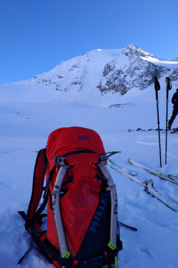 Zum ersten großen Testlauf geht es für den Millet Neo 35+ Tourenrucksack direkt in die Vollen! Bei unserer Skitour zum Hinteren Spiegelkogel im Ötztal, werden wir ca. 1.500 Höhenmeter und 13 Kilometer bewältigen. Außerdem wartet als schönes Finale die 45 Grad steile und 270 Meter hohe Nordflanke auf uns. Neben der allgemeinen Skitourenausrüstung stehen also noch weitere Mitbringsel auf meiner Packliste. So muss der Neo 35+ direkt beweisen, ob er sich neben Skitourenrucksack auch Skihochtourenrucksack nennen darf.
