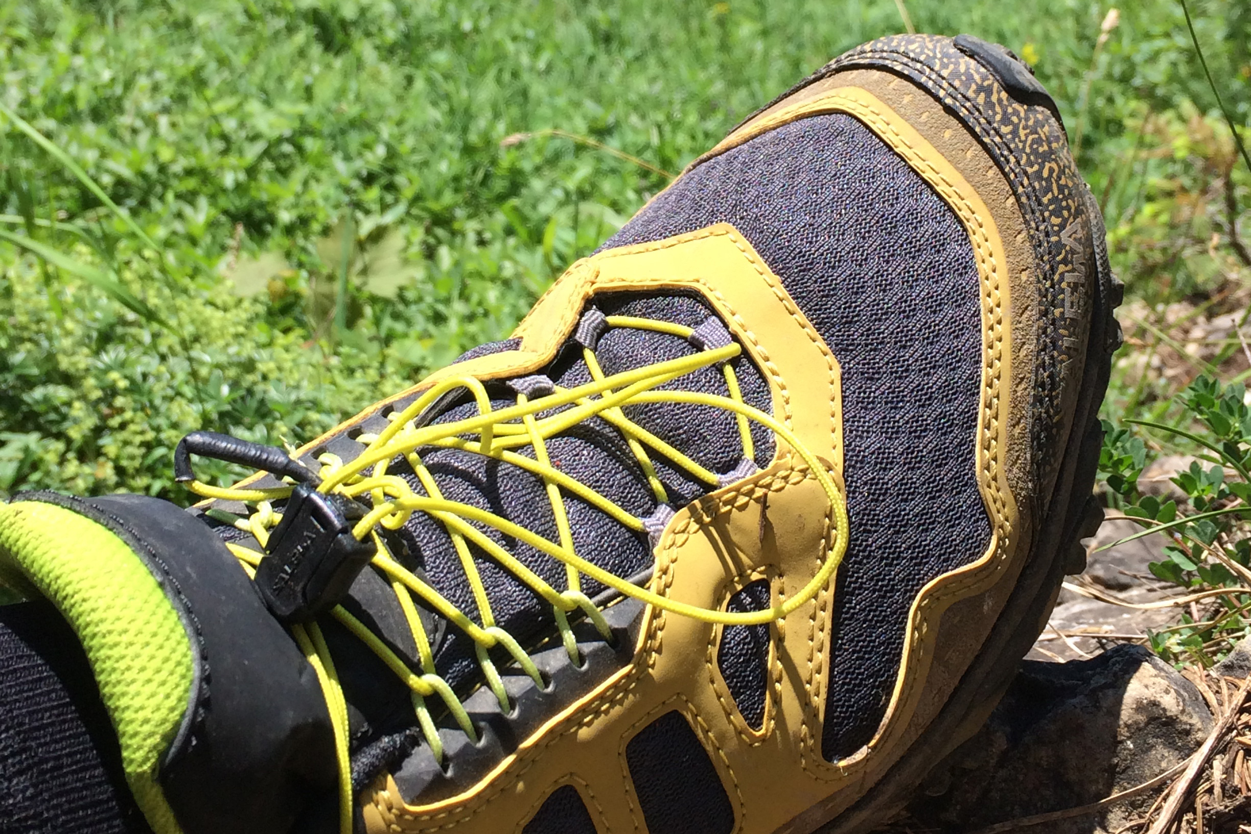 Das Schnellschnürsystem gefällt mir insgesamt sehr gut. Mit einem Zug sitzt der Schuh fest am Fuß und kann jederzeit im Nu nachgezogen werden. Gleichzeitig ist der Kordelzug für mich aber auch das einzig Negative an diesem Schuh: Denn ist der Schuh festgezogen, hängt ein großer Teil der Kordel frei herum.