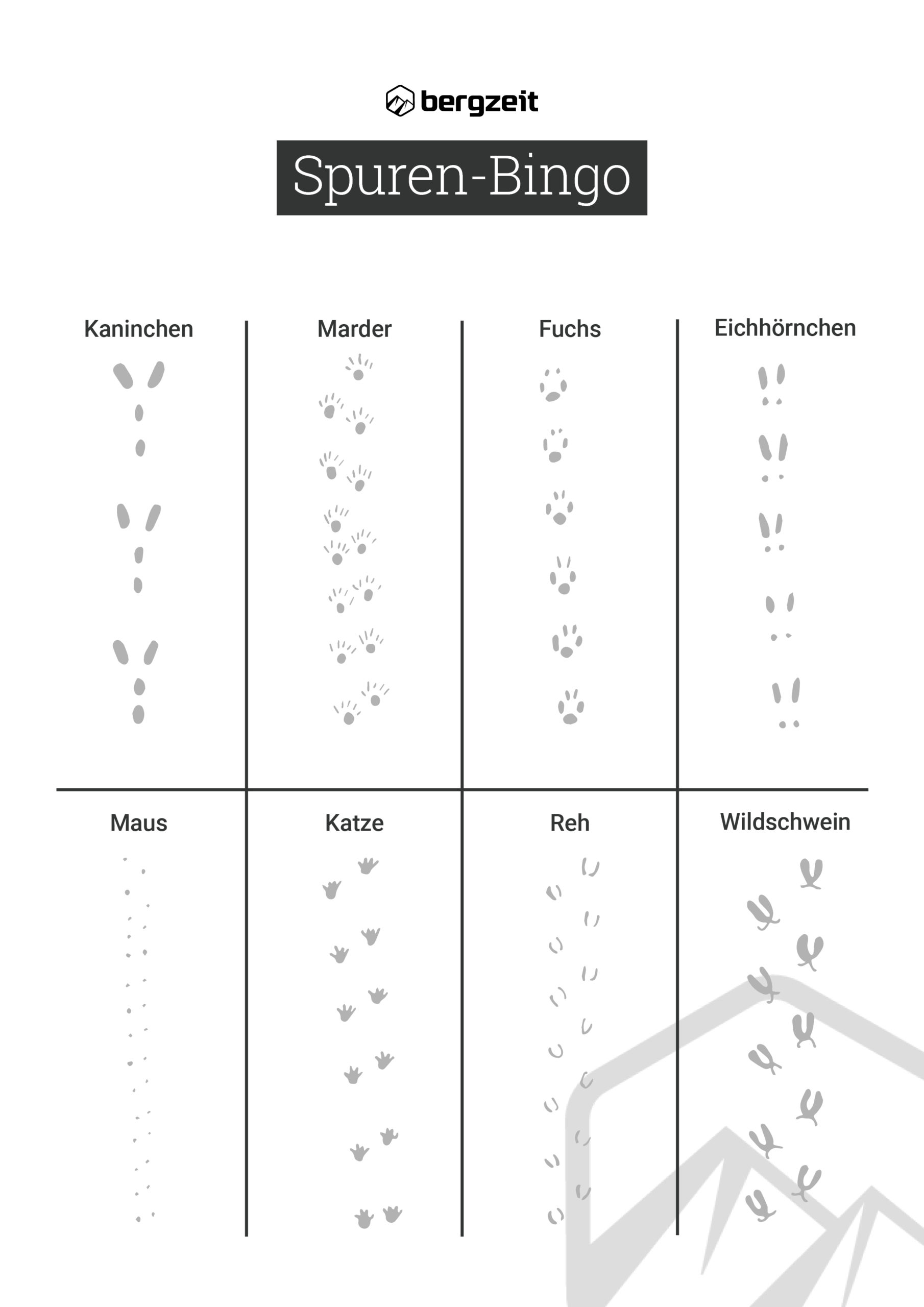 Welche Spur gehört welchem Tier? Die Bergzeit Spuren-Karte gibt Auskunft.