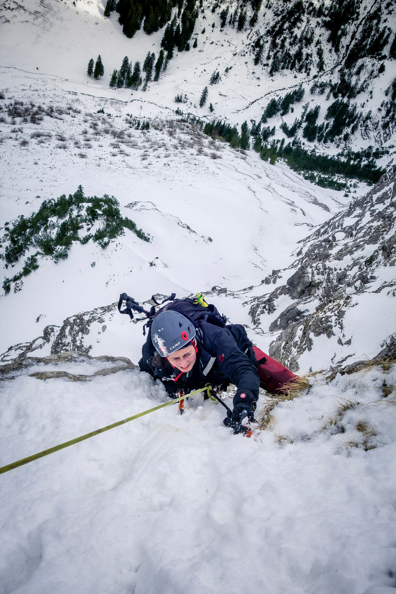 Als alter Nomic-Fan musste auch ich zugeben, dass diese Eisgeräte nicht nur im Steilen angenehm zu klettern waren, sondern – und hier liegt womöglich der größte Unterschied zum Nomic – eben auch im etwas flacheren Gelände, wo man mit dem Nomic gerne mal mit dem Griff aufschlägt. Dank des ausgeprägten Sporns unten sind die Cassin X-Dream Eisgeräte nicht zuletzt auch beim Stapfen geeignet, was einige Stunden später ausgiebig getestet wurde.