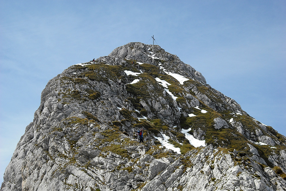 Ein Seil ist für den Aufstieg nicht nötig, einen Helm sollte man jedoch tragen. Wer in alpinen Unternehmungen noch nicht so erfahren ist, sollte einen routinierten Freund oder Kollegen dabeihaben. Am Grat angekommen klettern wir auch hier mehr, als dass wir laufen.