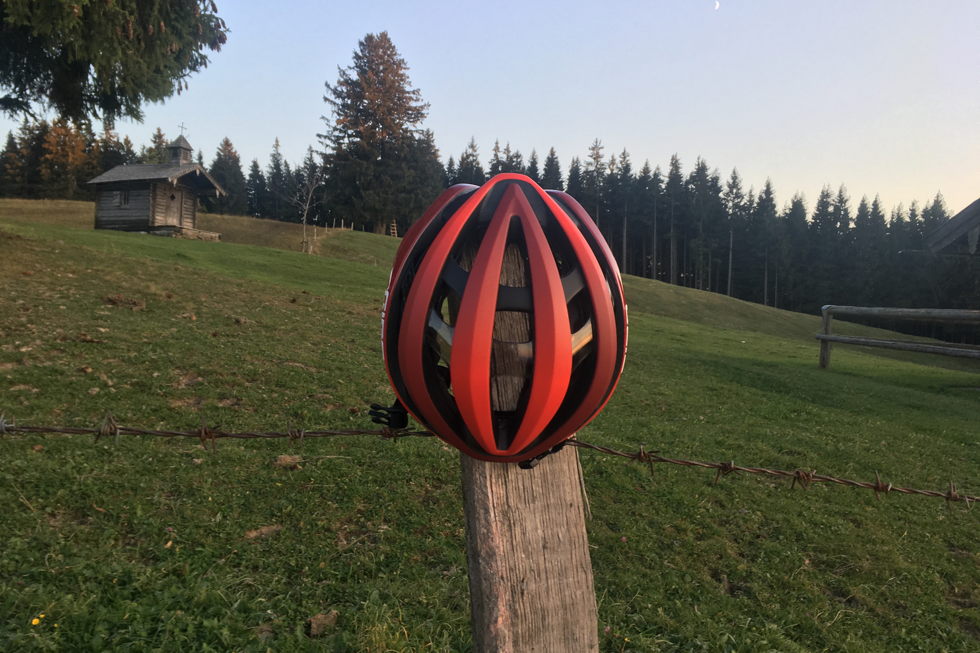 Der erste Eindruck von meinem Test-Helm ist äußerst positiv: Ich bin wieder einmal überrascht, wie leicht ein Helm sein kann. Dazu kommt noch das auffällige Rot mit dem coolen Farbübergang und ich bin – zumindest optisch – schon (fast) überzeugt.