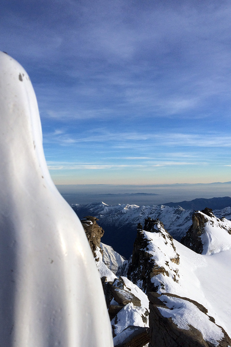 Oben angekommen, offenbart sich beim Blick über ihre Schultern ein fantastisches Rundumpanorama mit Aussicht auf die Legenden der Westalpen inklusive Mont Blanc und Matterhorn.