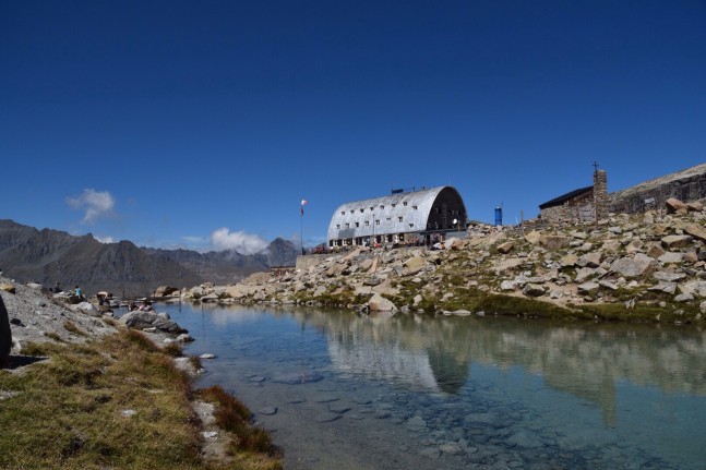 Vor dem Rifugio Vittorio Emanuele II hat der Gletscher einen See geformt.