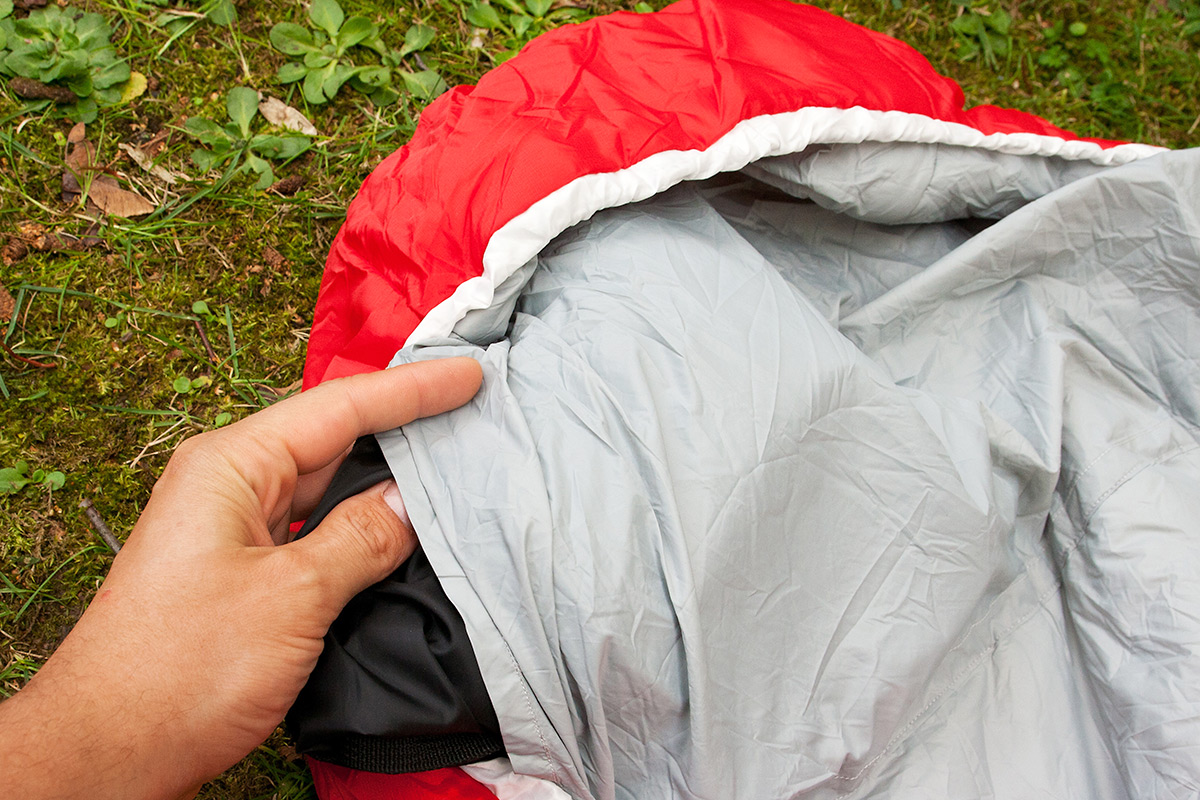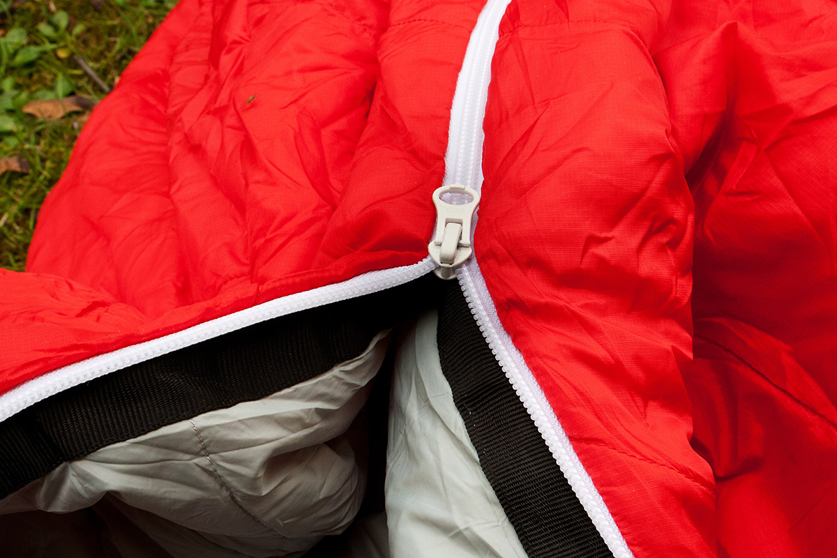 Auf einen Wärmekragen wurde bewusst verzichtet. Der mache erst ab Temperaturen unter null Grad Sinn, da sonst ein Feuchtigkeitsstau entstehe, so Wiesböck. Die Kapuze ist mit einem elastischen Schnürzug versehen, der Reißverschluss ist mit robustem Gewebe und einem Isolationskragen unterlegt. Er lässt sich kopf- und fußseitig öffnen und zwar so, dass man die Füße ausstrecken und sie auf den Schlafsack legen kann, statt daneben. Für mich ist dies allerdings eher ein Gimmick, da ich bei warmen Temperaturen den Schlafsack sowieso als Decke benutze. Dass der Reißverschluss von YKK stammt, verspricht auf jeden Fall ein langes Leben und dass man zur Not auch ein passendes Austausch-Schiffchen finden kann.