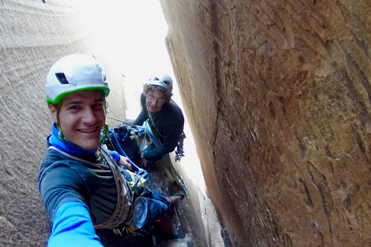 Bis zum Schwierigkeitsgrad 5.13 sammeln wir jede Menge Rissklettermeter. Man muss allerdings dazusagen, dass der klassisch europäische „layback“, also das Piazen, mir oft über die ein oder andere Risspassage geholfen hat.