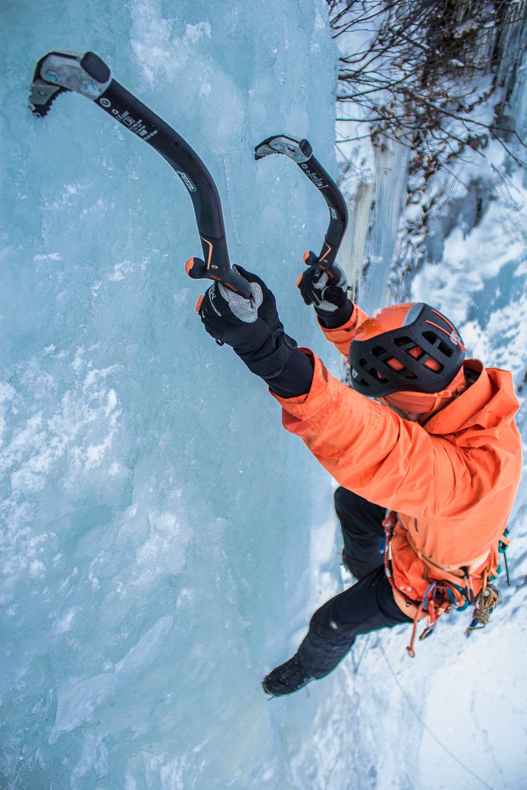 Beim Eisklettern werden Eisgeräte und Steigeisen benutzt, um Halt auf der glatten Oberfläche zu finden. Häufig gibt es zwischendurch auch felsige Abschnitte, welche mit den Eisgeräten bewältigt werden müssen, sogenanntes Drytooling. Besteht eine Mischung aus Fels und Eis, spricht man von Mixed Klettern. An Wettkämpfen wird teilweise auch an Kunstgriffen geklettert. Die Bewertung erfolgt auf einer eigenen WI-Skala (WI=Water Ice) bzw. M-Skala (M=Mixed) und ist zusätzlich von verschiedenen Faktoren wie Temperatur und Sonneneinstrahlung abhängig. Niedrige Temperaturen sind hier zwingend, weshalb Eisklettern eigentlich nur im Winter ausgeübt werden kann. Im Gelände kann Qualität und Form vom Eis stark variieren, weshalb auch hier gute Vorkenntnisse nötig sind.