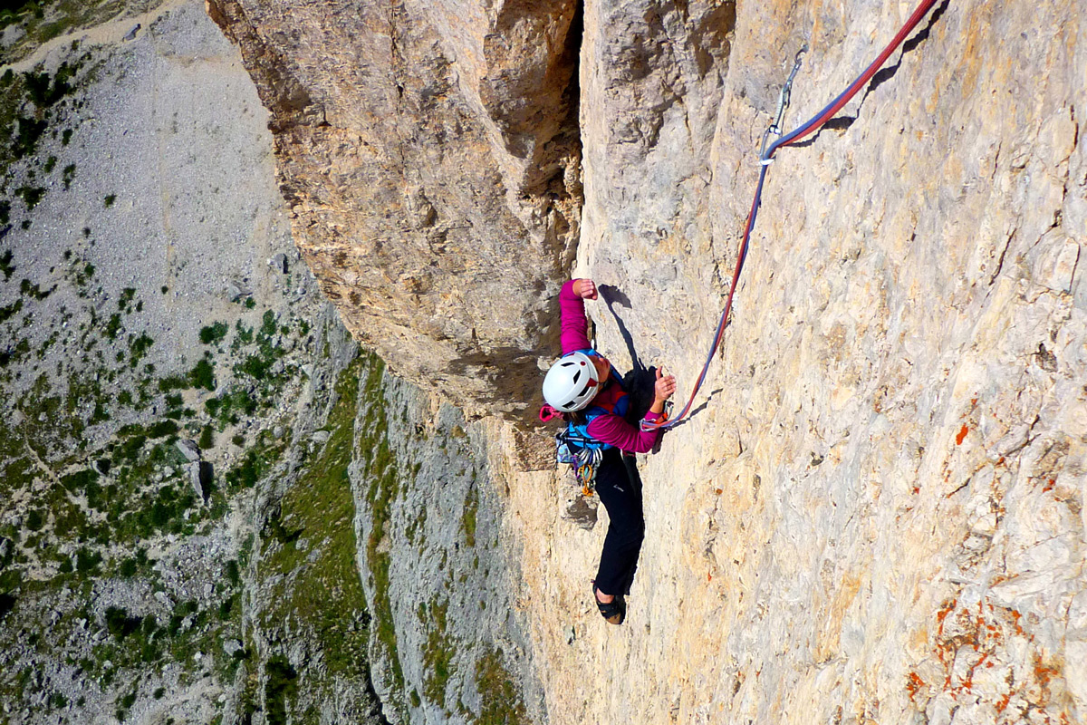 - Beschreibung: Die „Dimai“ teilt sich den untersten Teil der Route mit der „Miriam“, führt aber danach auf direktem Wege und mit toller Wandkletterei zum Gipfel.