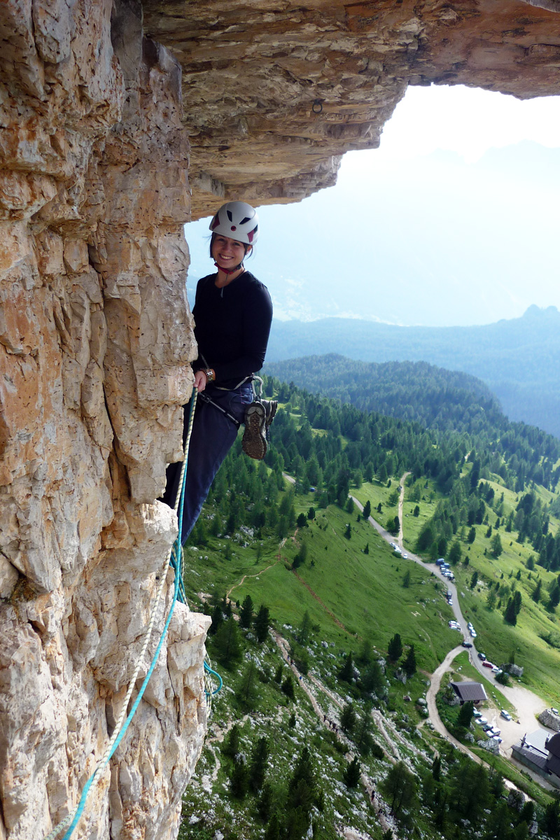 - Beschreibung: Fester, griffiger Dolomitenfels. Der ideale Einstieg, um einmal in den unteren 6ten Dolomitengrad reinzuschnuppern. Nach 13 schönen Seillängen liegt man auf der flachen, begrünten Gipfelebene und hat einen traumhaften Blick auf die Tofana!