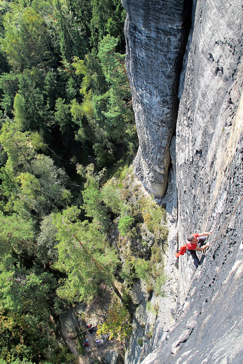 Für mich bedeutet Bergsteigen auch, dass es Momente gibt, in denen alles richtig gemacht werden muss; in denen im Falle des Falles ernste Konsequenzen drohen und Dir niemand außer Du selbst helfen kann. Dort, wo ein weiter hinauf besser ist als ein hinunter – darin unterscheidet sich das Klettern vom Bergsteigen, und genau das gibt es im Elbsandsteingebirge.