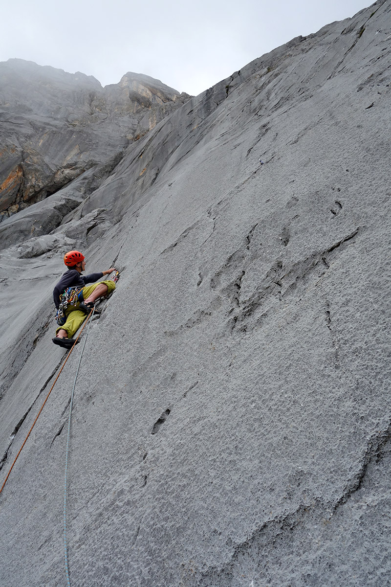 Da gibt’s recht wenige. Die meisten Linien wurden doch schon früher entdeckt und da war der Stil halt noch ein anderer. Lohnend sind sie aber auf jeden Fall! Ähnlich wie die anderen nicht-klassischen Routen schlängeln sie sich durch die rauen Platten und großgriffigen Überhänge. Nur die Absicherung ist wesentlich entspannter. Cams und Keile werden zum Teil gar nicht benötigt.
