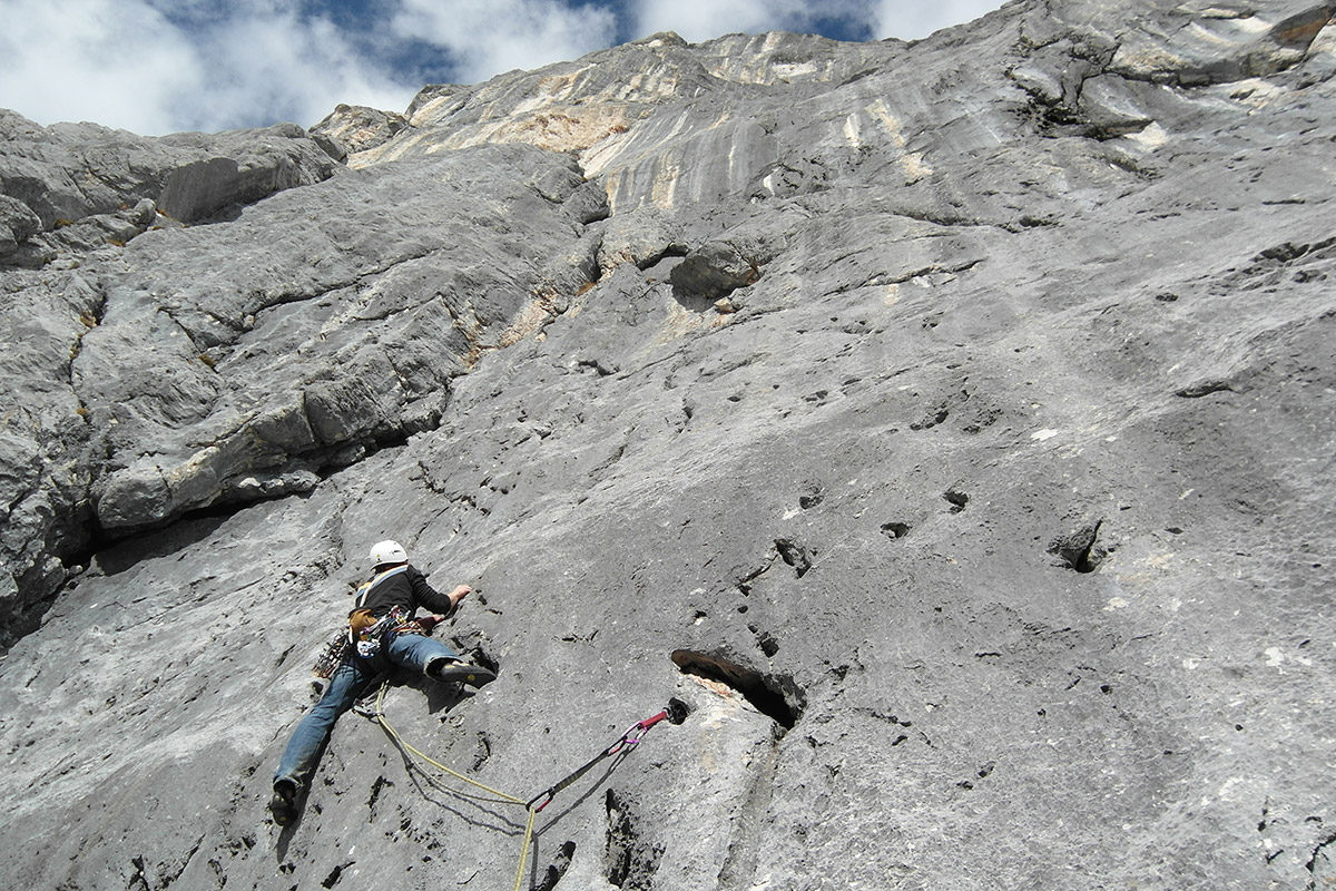 Die Klassiker folgen den logischen Linien der Wand. Also vor allem den Verschneidungen. Zwischendurch sind diese gerne mal mit einem kleinen Überhang garniert („Knapp-Köchler“, „Aschenbrenner“) oder mit senkrechter Wandkletterei wie in der „Peters-Harringer“. Oft gibt es auch beeindruckend ausgesetzte Quergänge über glatte Platten („Knapp Köchler“, „Jung und Alt“, „Aschenbrenner“).