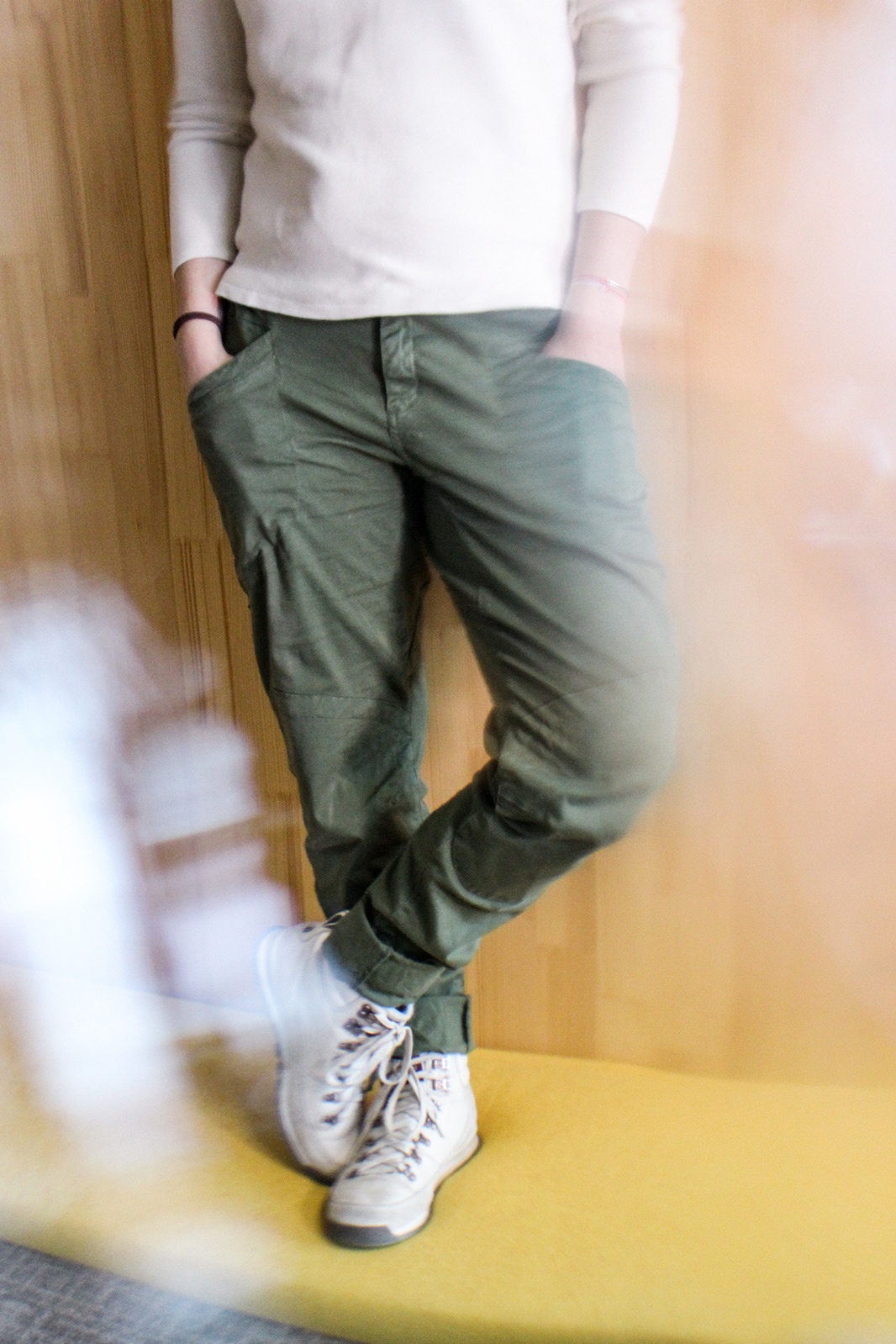 Was ich besonders mag: den Gummizug am Beinabschluss. So sitzt sie auch dort perfekt und ich kann die Hose am Bein etwas höher ziehen, falls es doch wärmer ist. Ich kremple sie auch gerne zweimal um – das sieht auch ganz lässig aus.