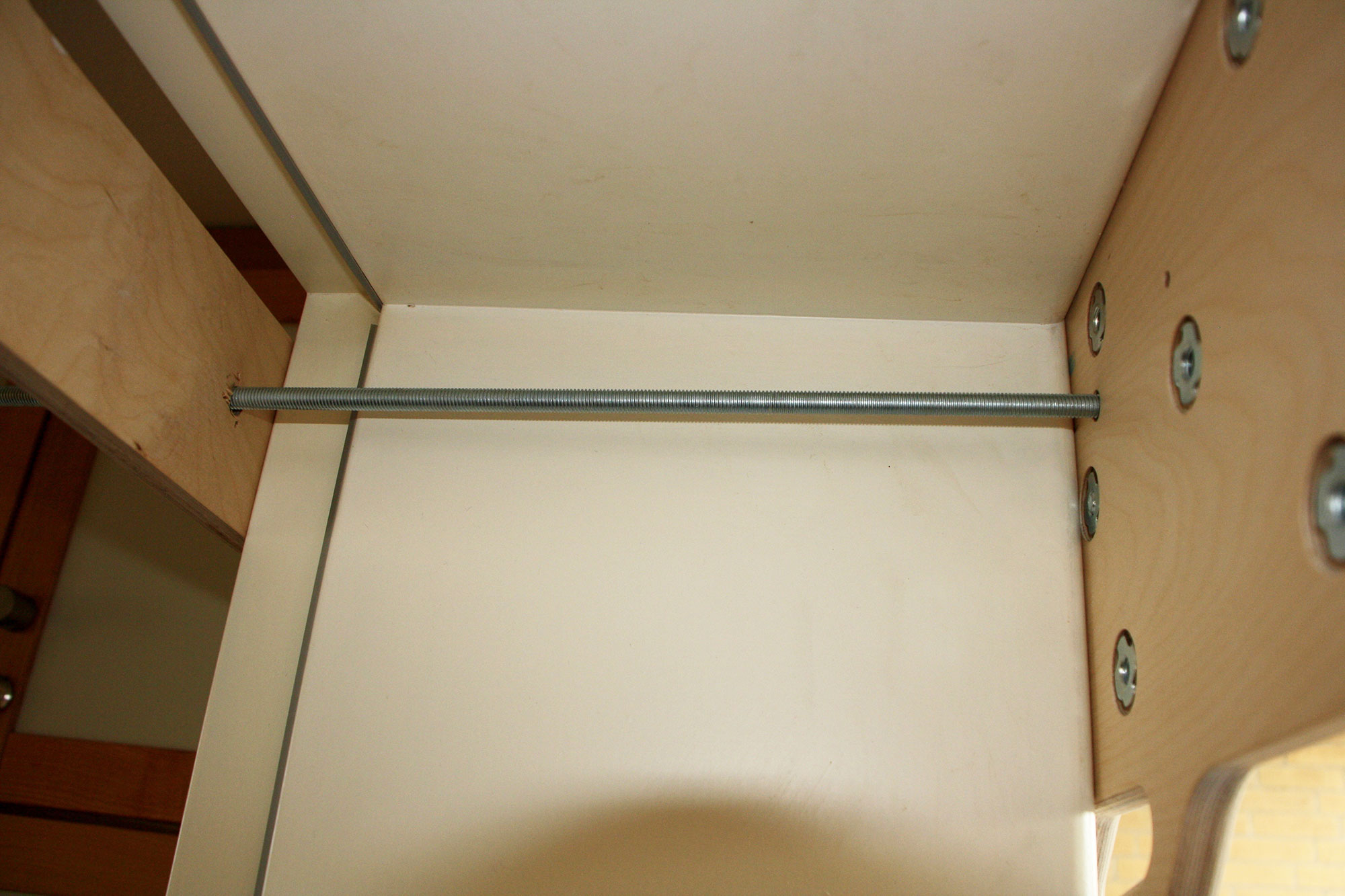 Montieren der Gewindestangen am Basewood. | Foto: Sophie Arnold - Anstecken der Gegenholzleiste und „lockeres Anschrauben mittels der Unterlegscheiben und der Muttern.