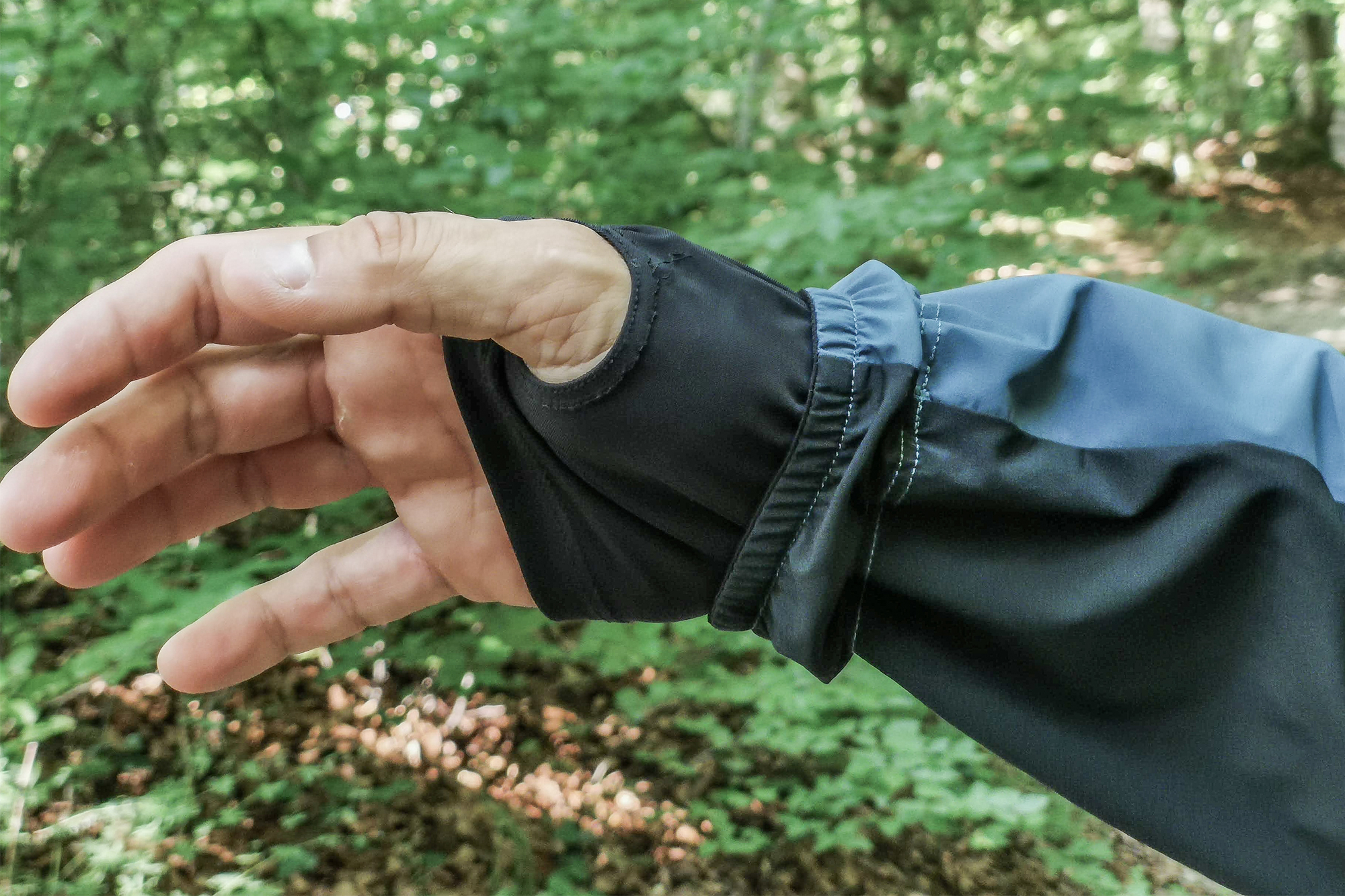 Die Kapuze bietet keinerlei Einstellungsmöglichkeiten und ist nicht dafür ausgelegt, dass man sie über dem Helm trägt. Kletterei oder Hochtouren sind aber auch nicht unbedingt die Fokus-Sportart der Montura Air Active Hoodie. Am Saum sowie an den Armabschlüssen fehlen ebenfalls Einstellmöglichkeiten, dafür sind an den Ärmeln schöne Stulpen mit Daumenlöchern aus Stretchmaterial angenäht. Das sorgt dafür, dass die Ärmel an Ort und Stelle bleiben – sehr schön!