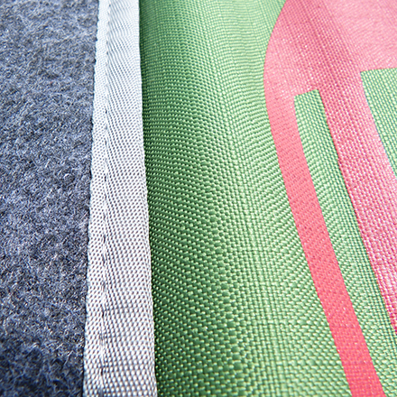 Das Außenmaterial aus Ballistic Nylon ist extrem widerstandsfähig, wasserabweisend und robust, die häufig strapazierten Ecken sind mit einer doppelten Stofflage verstärkt. Auf der Unterseite verhindern zwei breite Streifen einer rutschfesten, genoppten Beschichtung das Wegrutschen der Matte auf dem Boden.