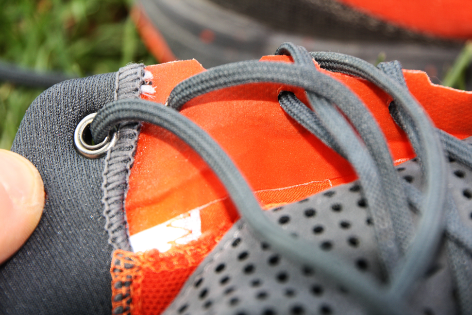 Der Fersen- und Zehenbereich wurde durch eine Gummibeschichtung verstärkt, um einen besseren Halt des Fußes im Schuh zu gewährleisten. Zusätzlich dient er auch als Durchscheuerungsschutz des dünnen Außenschuhs. Für die perfekte Schnürung sorgen fünf Ösen an jeder Seite. Der Ösenbereich ist durch Tapestreifen verstärkt. Es wurden zusätzliche Verstärkungen von den Ösen bis hin zur Sohle eingearbeitet. Dadurch erhält der Fuß trotz des Stretchmaterials einen festen Halt!