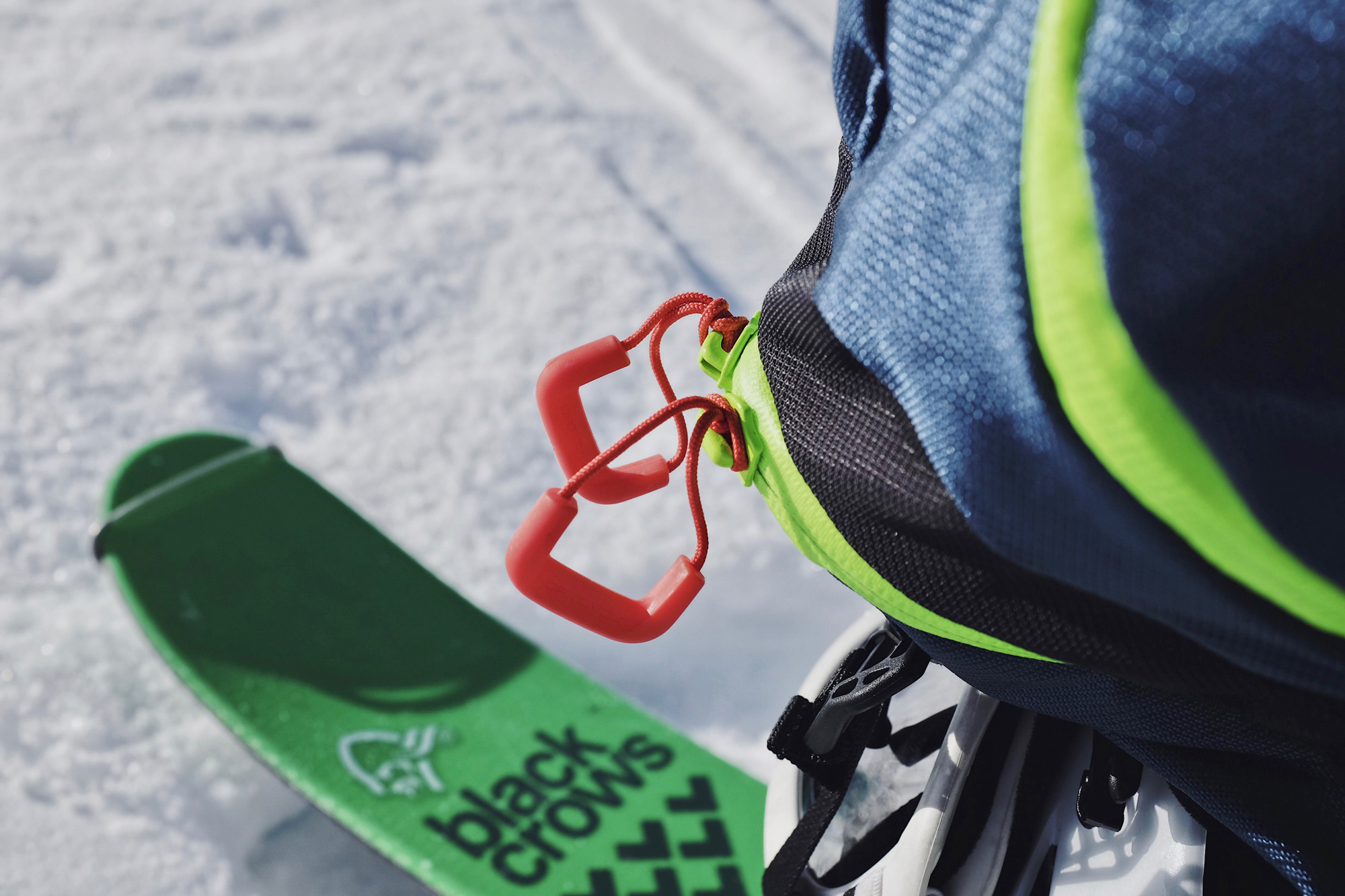 Der Hauptfachzugang am Rücken ist mein absolutes Lieblings-Feature. Darüber freue mich mich bei jedem Halt. Schnell mal die Harscheisen rausholen, eine Kleinigkeit. Sehr innovativ gelöst finde ich im Speziellen die Seilfixierung mit einem extra dafür bereitgestellten Riemen an der Oberseite.