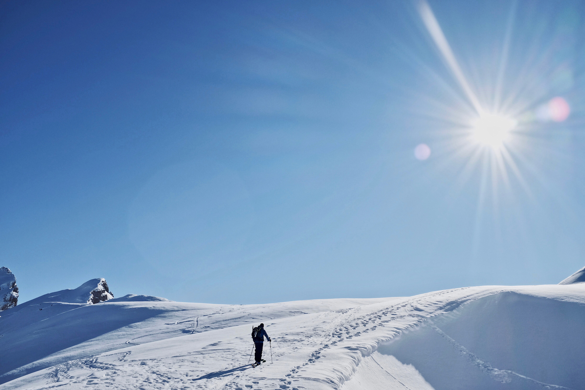 Mein erster Eindruck bestätigt sich: ein robustes Arbeitsgerät das alle wichtigen Features für den Berg mit sich bringt und darüber hinaus mit durchdachten Details begeistert. Das Ganze packt der Haute Route in eine moderne Optik in zwei Farbvarianten. Wer mehrere Tage auf Tour ist, hat hier mit Sicherheit alles, was er braucht. Meine Lieblings-Features sind der Zugang am Rücken und die Helmhalterung, welche mir schon bei meiner Test-Tour das Leben merklich erleichterte. Diese führte mich einen Tag durchs Gelände in der Innerschweiz. Einen ersten Gipfel, Abfellen für die Abfahrt und dann erneutes Anfellen für den eigentlichen Gipfelanstieg, auf welchen ich am Schluss die Skier aufgebunden trug. Dann eine Abfahrt bis ins Tal, welche von Tiefschneehängen über Mulden bis durch den Wald alles mögliche an Terrain bot. Nie wünschte ich mir meinen bisherigen Rucksack zurück.