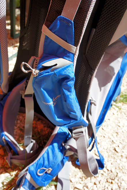 Zum Glück habe ich meine Trekkingstöcke dabei, denn mit dem Kind in der Kraxe und unserer gemeinsamen Verpflegung bin ich gut beladen. 18 Kilo eben, die bei der Osprey Poco Premium, wie eingangs erwähnt, noch nicht das Limit sind. Auf den ersten 400 Höhenmetern der Test-Tour schwitze ich kräftig. Da kann auch das gute Belüftungssystem der Kindertrage am Rücken wenig ändern. Bald ist das Gelände etwas flacher. Dort wartet ein Graben auf mich, bei dem sich der gute Sitz der Kindertrage bewährt: Die Osprey Poco Premium liegt stabil am Körper an und bringt mich auch auf schwierigeren Passagen nicht aus dem Gleichgewicht. Nachdem wir einige mit Drahtseil gesicherte Stellen passiert haben, will ich den Hüftgurt etwas lockern. Auch hier bin ich positiv überrascht: Während des Tragens lässt sich der Gurt dank des patentierten Fit-on-the-Fly-Systems einstellen. Um 7,5 Zentimeter könnte ich die Hüftflossen verlängern, wieder ein System, das sich optimal an Mama und Papa anpassen lässt. Ospreys Lösung dafür ist simpel: Ich öffne den Klettverschluss am Hüftpolster und ziehe das Ganze nach vorne. Fertig.