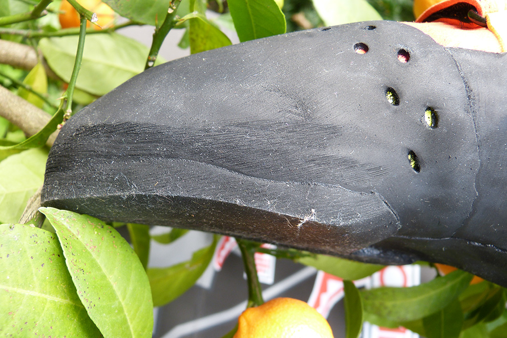 Die Größe war jedoch das einzige Problem, das ich mit dem brandneuen High-End-Kletterschuh aus dem Hause Glowacz hatte. Im vergangenen Jahr hatte ich schon den Octan getestet. Damals war für meine eher breiten Füße der enge Einstieg schwierig. Das Red Chili-Team hat daran offensichtlich gearbeitet und eine Lösung gefunden: den „1-VCR-Einstieg“. Das ist ein keilförmiger, elastischer Stretch-Einsatz am Rist. Zusammen mit drei Anziehschlaufen (im Vergleich zum Octan eine zusätzliche am Rist) erleichtert diese Ausstattung das Anziehen beim neuen Modell deutlich. Die beiden Schlaufen an der Ferse sind dabei besser zu fassen als die für meine Finger etwas zu klein geratene Lederschlaufe am Rist. Bis zum Vorderfuß gestaltet sich das Hineinschlüpfen einfach, dennoch ist für den Restfuß nach wie vor – zumindest anfangs – etwas Geduld nötig. Mein Tipp: Ein Stück Plastikfolie unter der Ferse spart Nerven und schont das Material.
