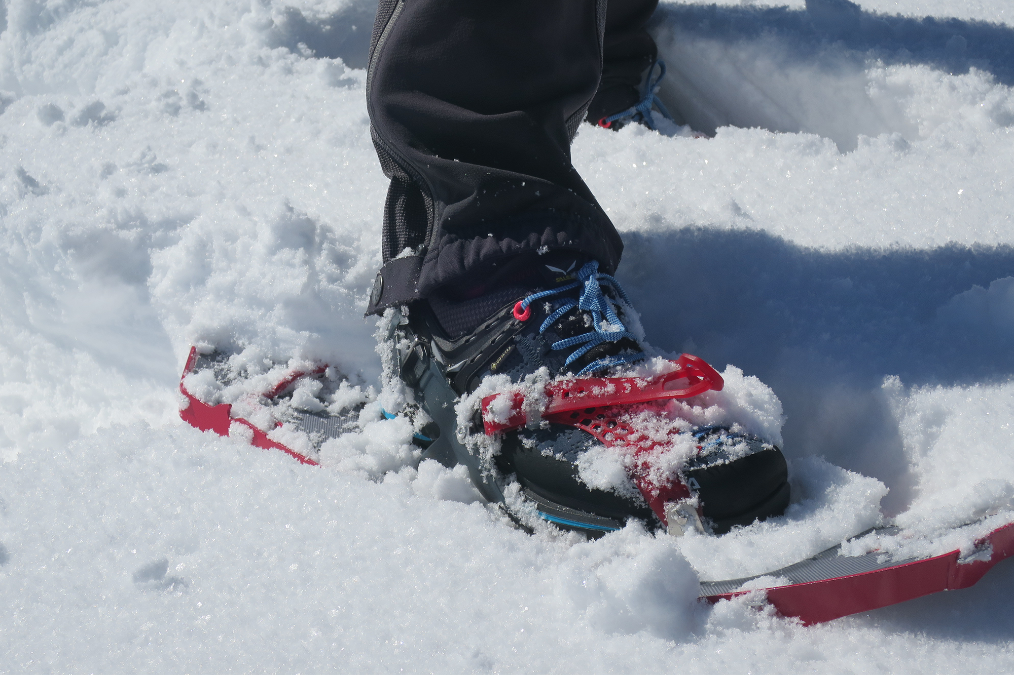 Selbst im Einsatz mit Schneeschuhen macht der Salewa MTN Trainer eine stabile und gute Figur.