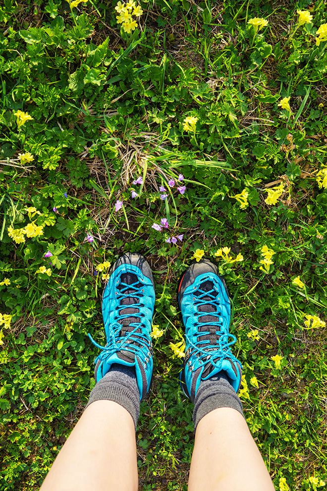 Jetzt geht’s jedoch ans Eingemachte. Passende Hose angezogen, Socken richtig platziert und hinein in den blauen Wanderschuh. Unfassbar, er passt wie angegossen! Oh, wir zwei werden viele Abenteuer miteinander erleben!