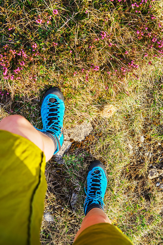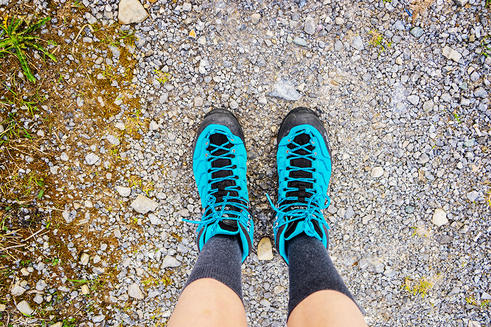 Zwei Wochen lang verlässt der Salewa Rapace GTX meine Füße nicht, außer im Haus und beim Schlafen. Die ersten Stunden haben wir uns vorsichtig angenähert, wie bei einem ersten Date. Die Weite beziehungsweise Enge des Schuhs kann mit Hilfe der vielen Ösen und der straffen Schnürsenkel kinderleicht angepasst werden.