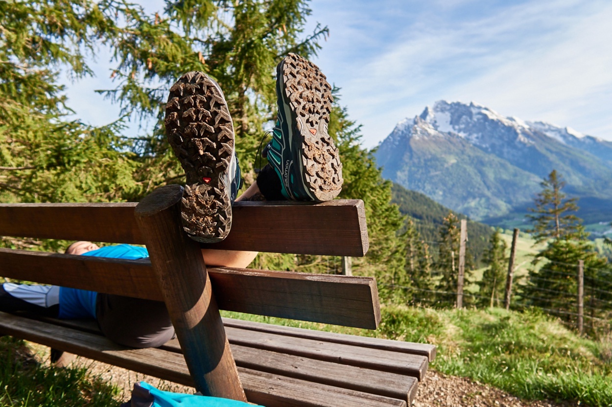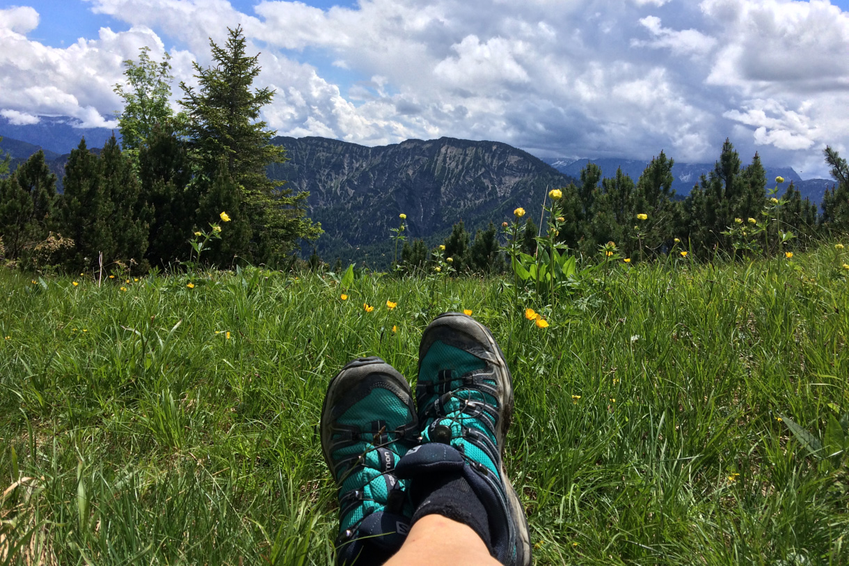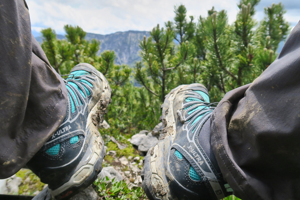 Die erste Tour ist eine Almwanderung im Berchtesgadener Land: Ausgewaschene Pfade und wurzeldurchwachsenes Gelände sind für meinen neuen Begleiter kein Problem, ich teste auch mal über eine kurze Strecke das Joggen über Wurzeln, Stock und Stein aus und merke: da ist der Schuh wirklich in seinem Element.