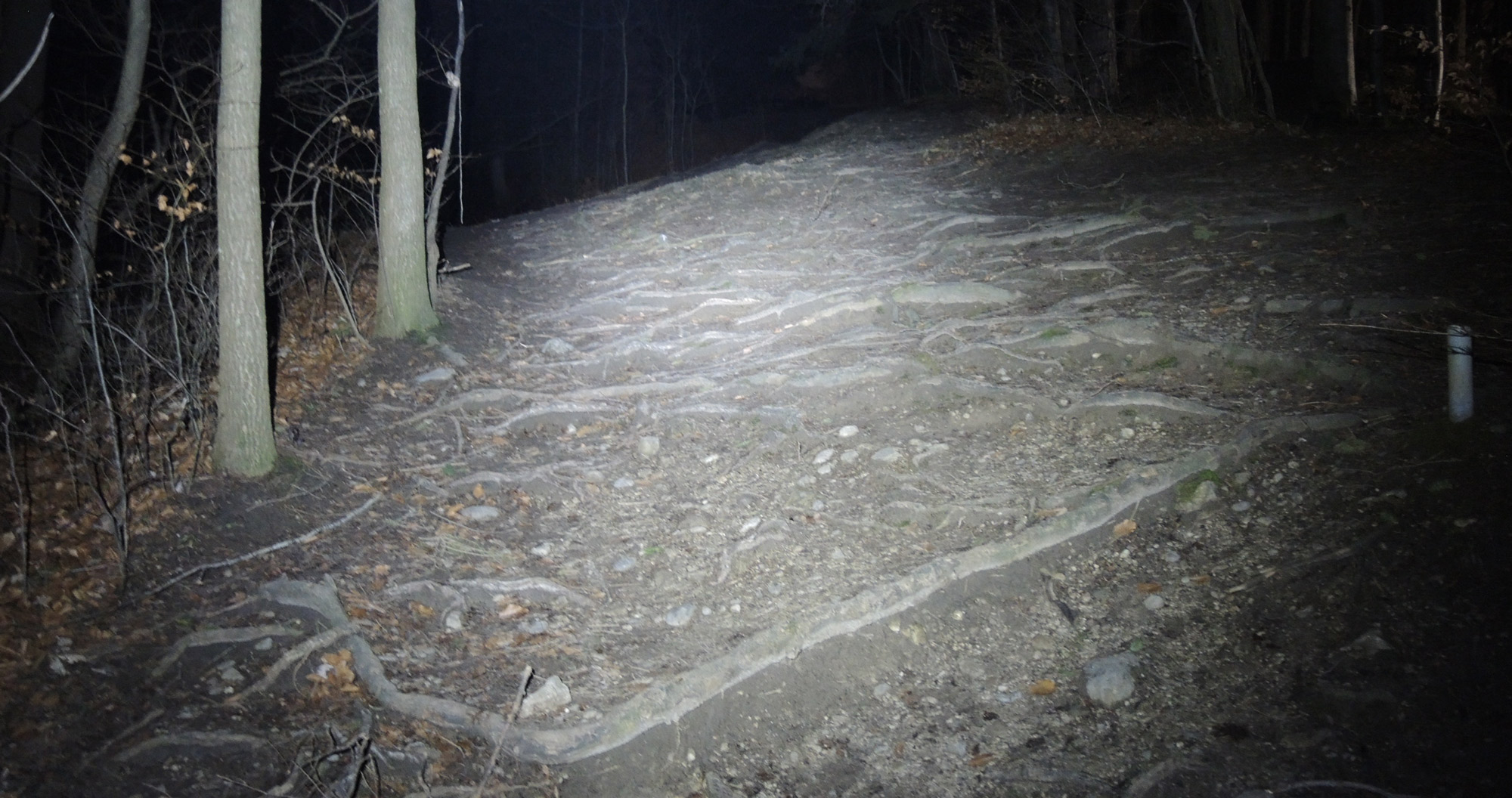Da es sich hier um einen recht schmalen und technischen Trail handelt, hatte ich die Lampe durchgehend auf höchster Stufe (800 Lumen) in mittlerer Höhe eingestellt. Da ich für gewöhnlich den Trail sowohl mit Stirn- als auch Lenkerlampe fahre, war ich sehr skeptisch, ob ich mit nur einer Lampe am Lenker ebenfalls gut unten ankommen würde.