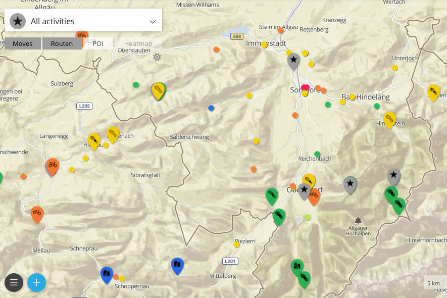 Auf Movescount gibt es eine Vielzahl von Routenvorschlägen, sortiert nach Sportart und Region, die man importieren kann. Die sogenannte Heatmap ist ein witziges neues Feature – es zeigt pro Region und Sportart die meistbenutzten Routen an (eine dickere orangene Linie zeigt an, dass dieser Weg von anderen Suunto-Nutzern häufiger benutzt wird). So erkennt man Ballungsgegenden gut und findet vielleicht eine Route, die man bisher nicht gekannt hat.