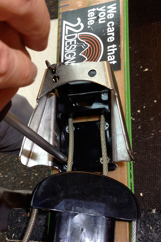 - Wenn alle Schrauben festgedreht sind, muss die Bindung nur noch auf die Größe des Telemarkschuhs eingestellt werden.