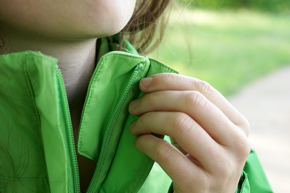 Schon beim ersten Anziehen bin ich begeistert. Das Material fühlt sich sehr angenehm und dünn, aber dennoch hochwertig an. Ohne an Funktionalität einzubüßen, sieht diese Outdoorjacke in den kräftigen Farben und dem leicht taillierten Schnitt sehr modisch aus. Die Fronttaschen bieten ausreichend Platz für Schlüssel, Portemonnaie und Telefon, ohne jedoch zu sehr aufzutragen.