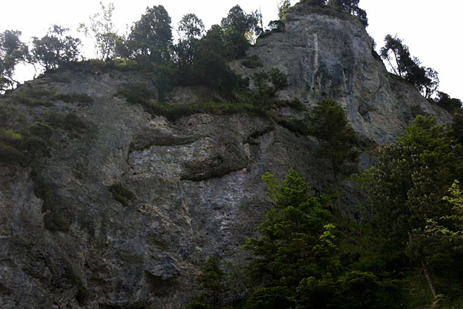 Im Klettergarten selbst gibt es Routen für jedermann, die sehr gut abgesichert sind. Einziges Manko an diesem Gebiet: Direkt auf der anderen Seite des Baches liegt ein Schießstand, auf dem tatsächlich in Wandrichtung geschossen wird. Abgesehen von dem Hall, der durch die Schüsse ausgelöst wird und garantiert jegliche entspannte Atmosphäre zerstört, sollte am rechten Wandteil auch nicht geklettert werden, wenn der Schießstand in Betrieb ist.