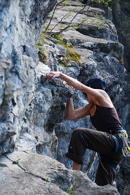 - Charakter und Absicherung: Da die leichteste Route im unteren siebten Schwierigkeitsgrad ist, tümmeln sich hier in erster Linie sehr starke Kletterer von teilweise weit her. An dem Fels wird eigentlich das ganze Jahr lang geklettert und ist sowohl bei warmen Sonnenstrahlen (ab ca. 14 Uhr) im Winter als auch in der Abendsonne im Sommer gemütlich. Die Absicherung ist gut, die Hakenabstände kurz. Umlenker sind vorhanden.