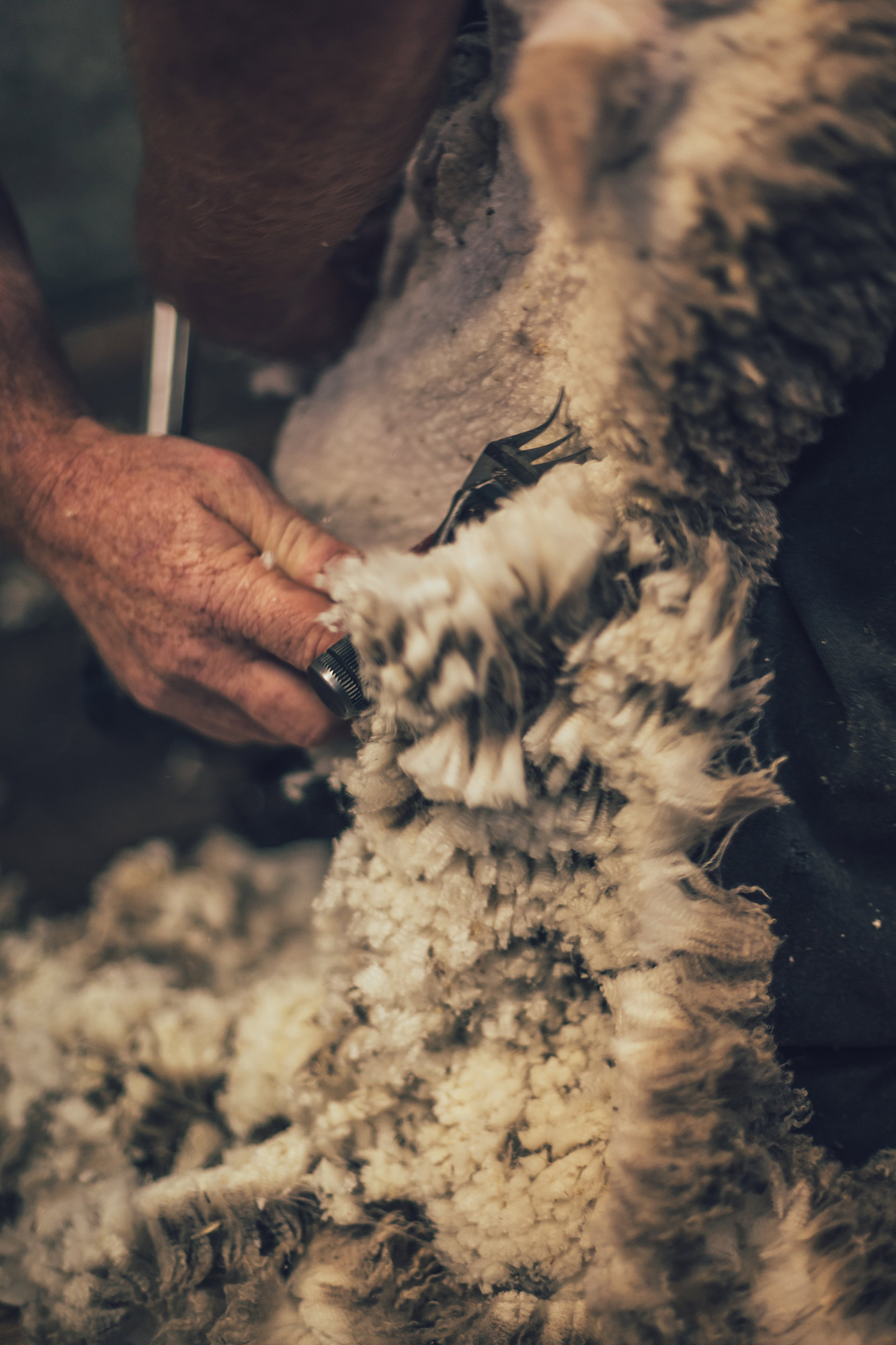 Unsere tasmanischen Farmer vermeiden Mulesing nur durch sehr, sehr viel Aufwand. Sie scheren die Schafe zusätzlich unter dem Jahr. Das heißt es wird nochmal ein fast kompletter Scherprozess durchgeführt. Die Schafe werden zusammengetrieben, die Scherer kommen noch einmal und dann wird um den Schwanz die Wolle geschoren. Diese ist nicht einmal sehr wertvoll. Und der zweite Ansatz ist, die sogenannten „Wrinkles“, die Hautfalten die das Merinoschaf von Natur aus hat, wegzuzüchten und über viele Generationen hinweg Schafe mit glatter Haut zu züchten. So werden auch die Hautfalten um den After vermieden und die Fliegen können sich nicht so leicht einnisten.