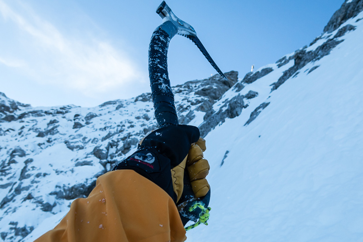 Da der Laserz.TW so gefühlvoll ist, punktet er auch auf kombinierten Touren, wo mit Eisgeräten, Seilen, mobilen Sicherungen und Karabinern jongliert werden muss. Sicherlich sind dünnere Handschuhe hier noch besser – diese wärmen aber auch nicht so gut.