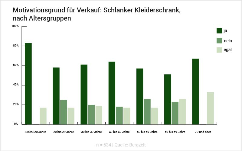 Weit mehr als die Hälfte (60 %) schätzt es, dank eines schlanken Kleiderschranks den Überblick über die eigene Outdoor-Ausrüstung behalten zu können und bietet daher gern einmal was davon zum Verkauf an.