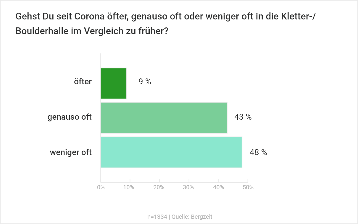 Über 50% gehen mind. genauso oft in die Boulderhalle wie früher