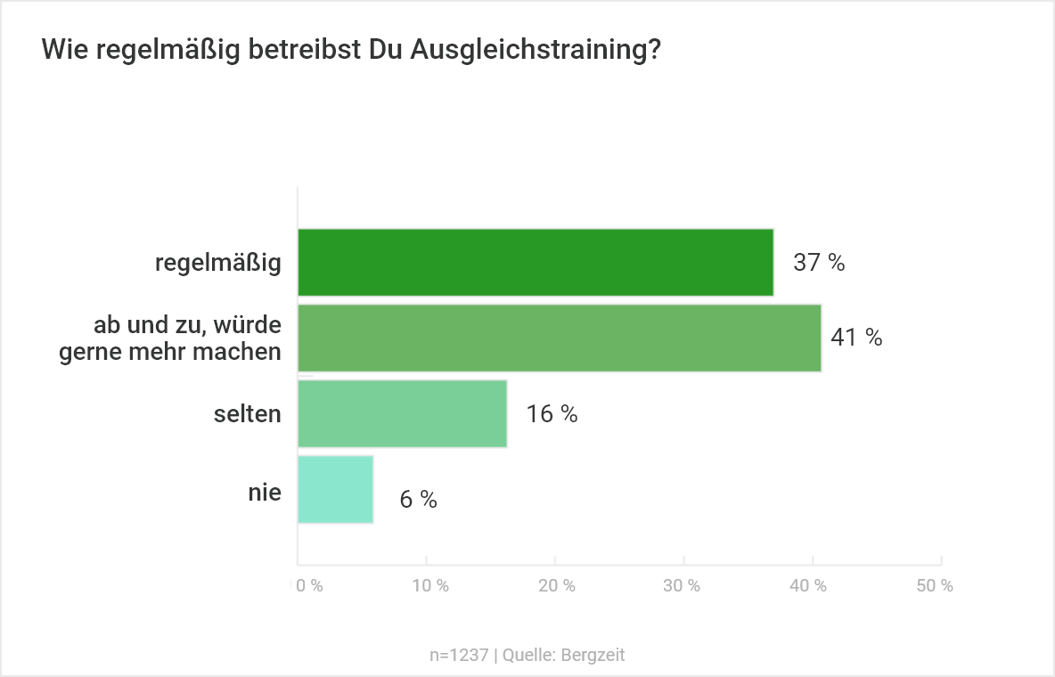 37% der Befragten betreiben regelmäßig Ausgleichtraining – darunter vor allem Männer der Altersgruppe 46 bis 55 Jahre.